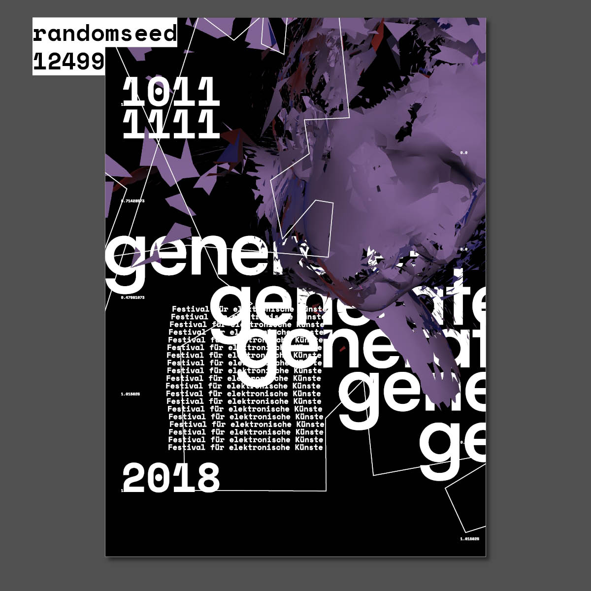 Algorithmically generated festival poster in A1, limited edition of 200 unique prints, each with random seed of uniqueness.
