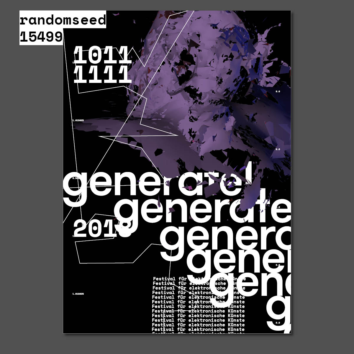 Algorithmically generated festival poster in A1, limited edition of 200 unique prints, each with random seed of uniqueness.